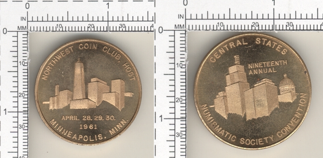 19th Annual Convention - Northwest Coin Club - Host, April 28, 29 & 30, 1961 - Minneapolis, Minn. - Gilt Bronze
