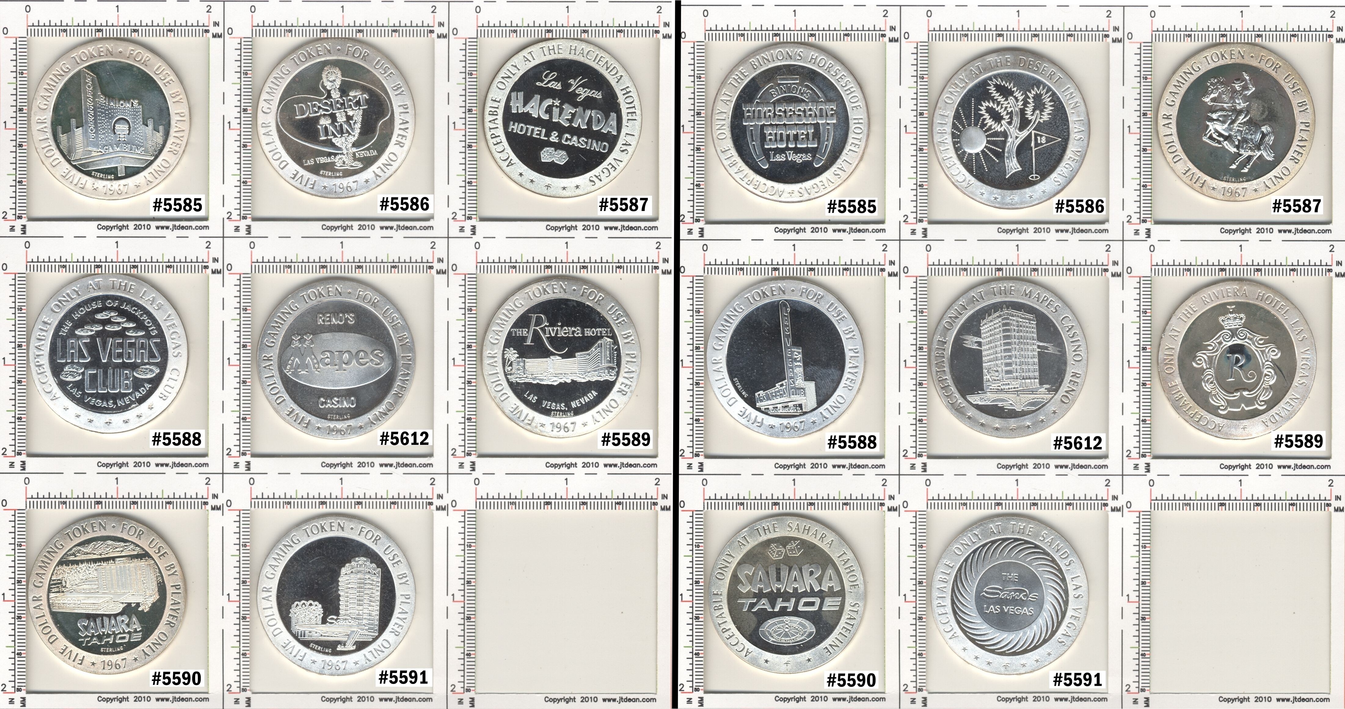 1967 - $5 GAMING TOKEN, DESERT INN, LAS VEGAS, NV - PROOF
