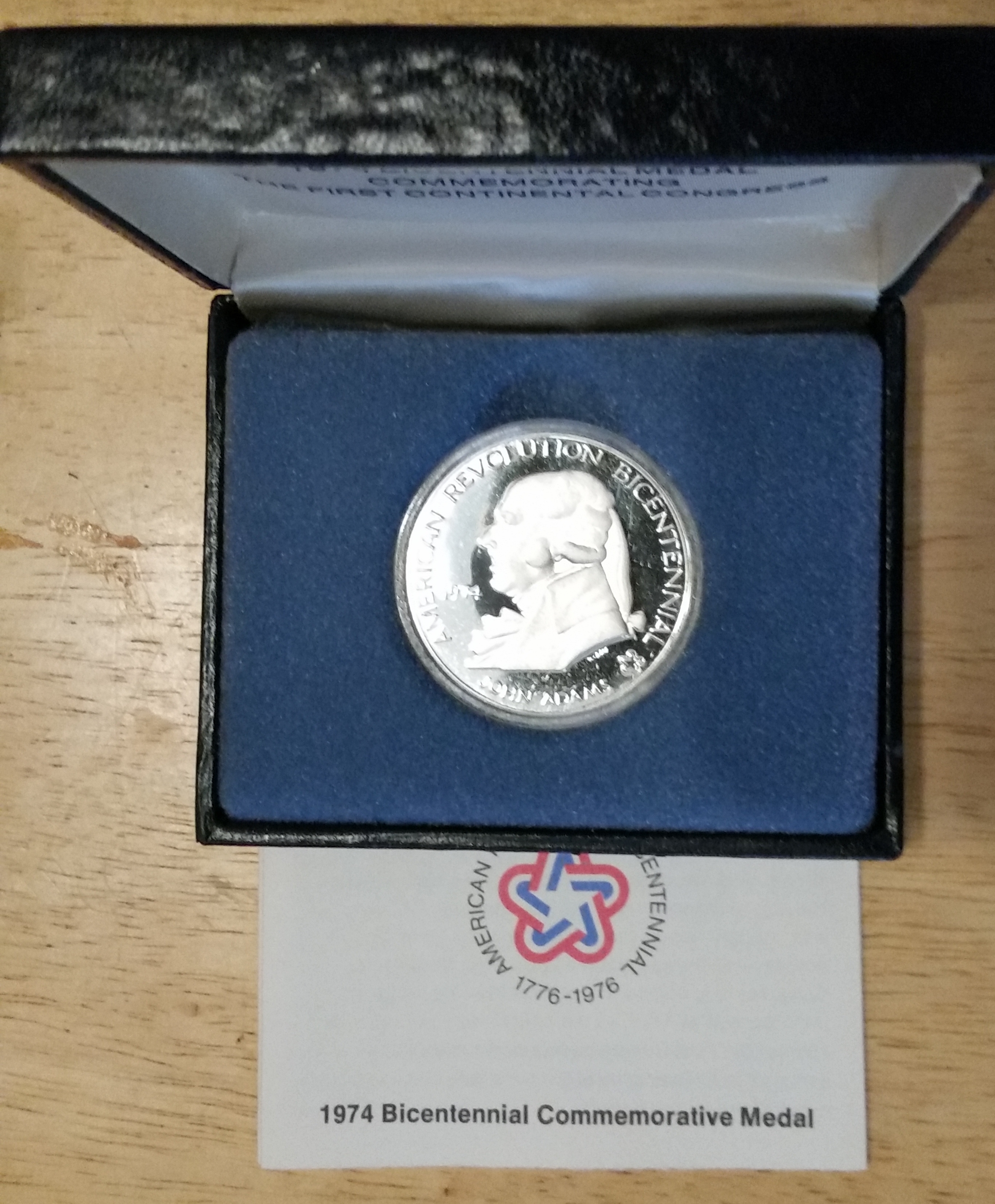 American Revoultion Bicentennial Comission (ARBC) Medal - 1974 - John Adams - Undated in PNC with stamps(s)