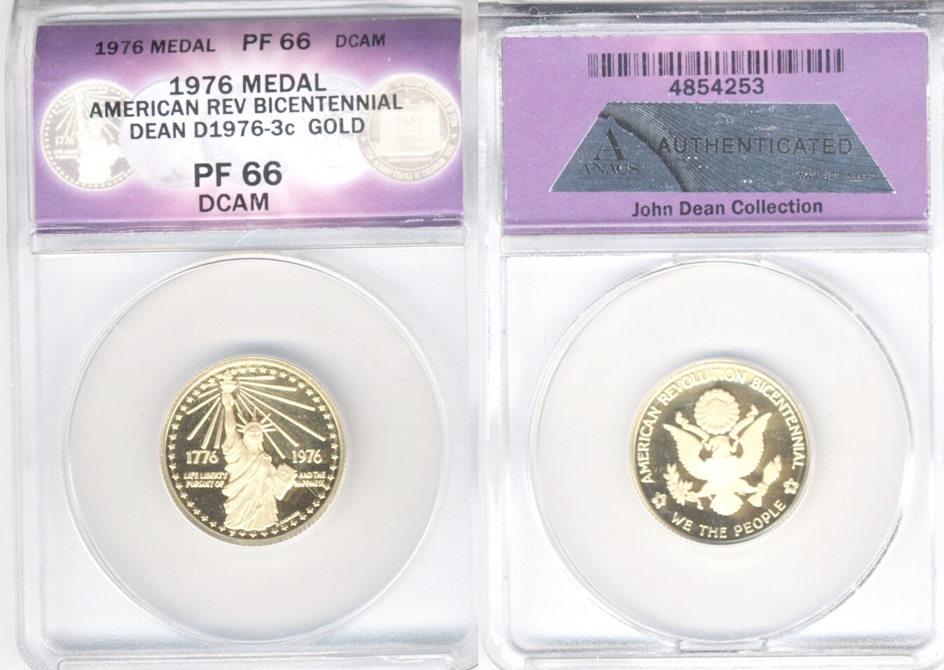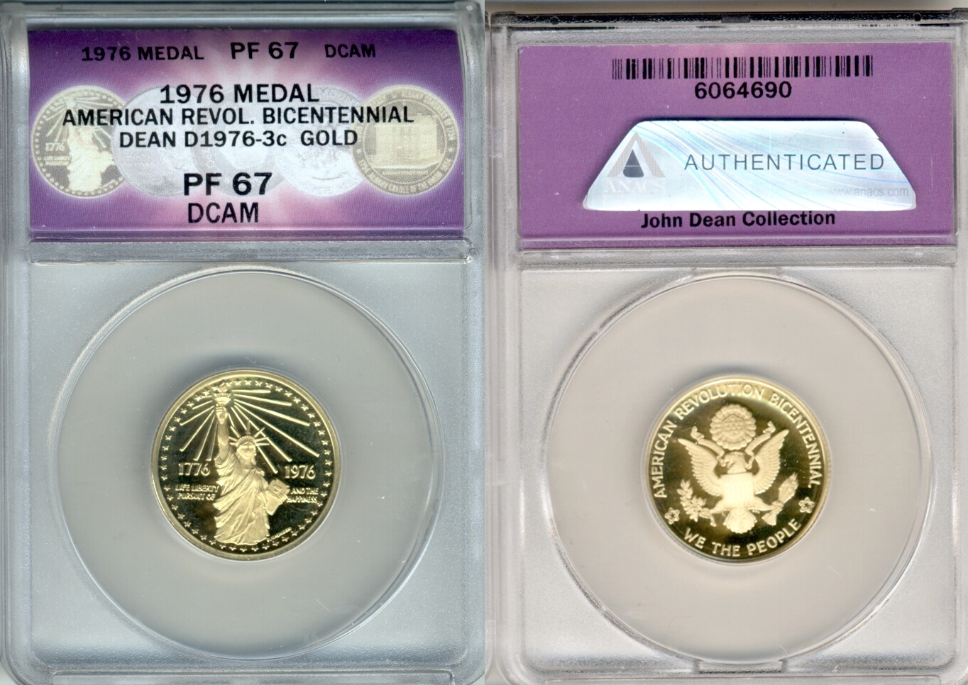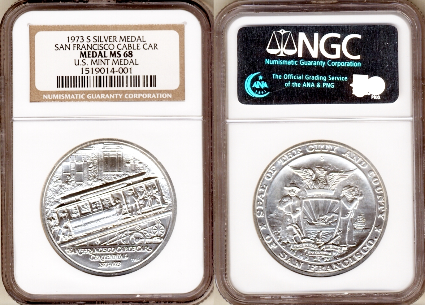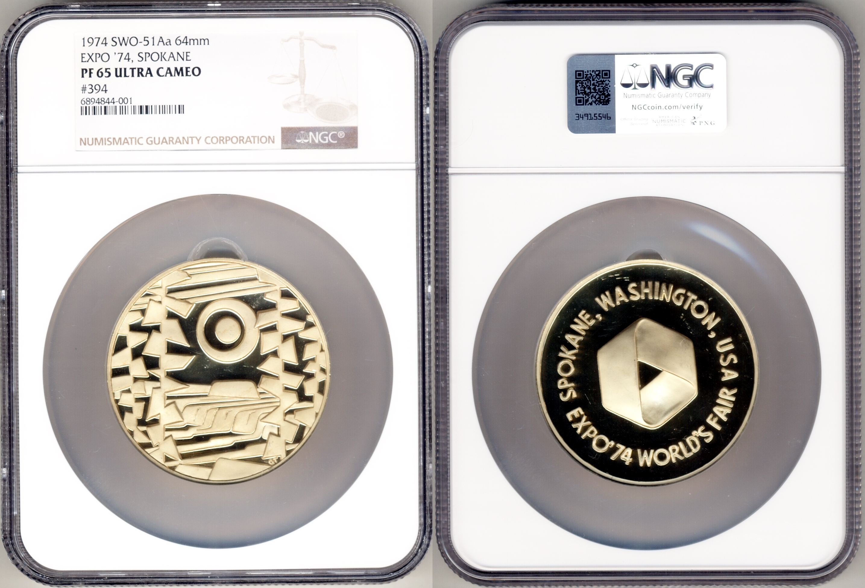 2.5" Diameter Gold-Plated Silver (Vermeil) medal. Only about 400 of these were gold plated. This one has edge #394. A beautiful piece, which I feel should have graded 1 to 2 points higher. Comes with some paperwork.