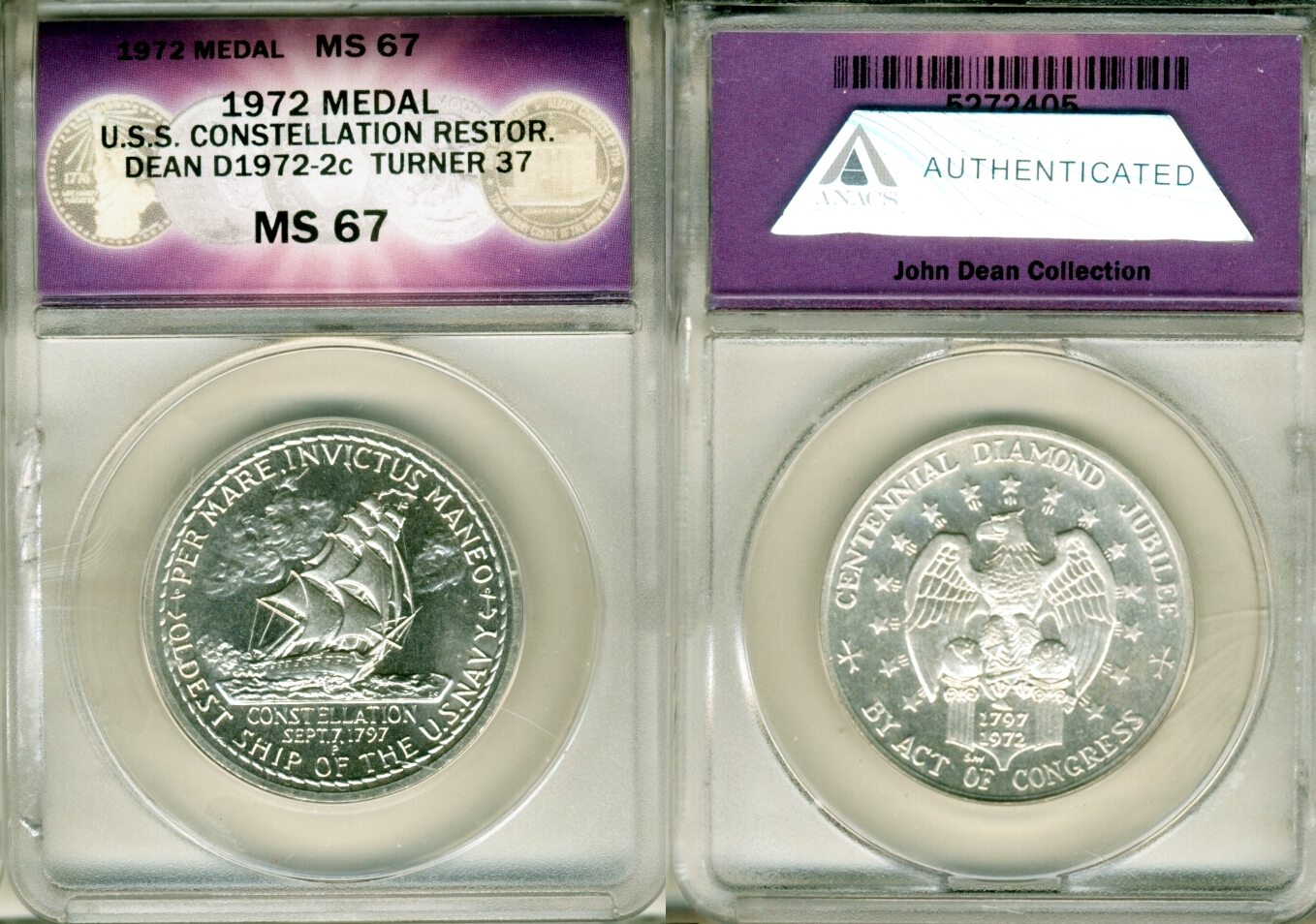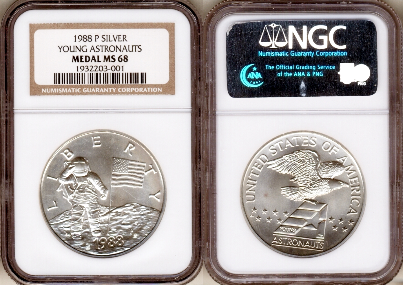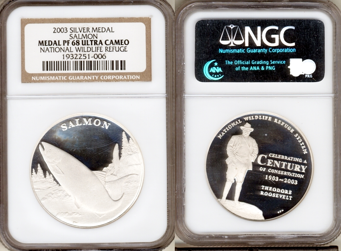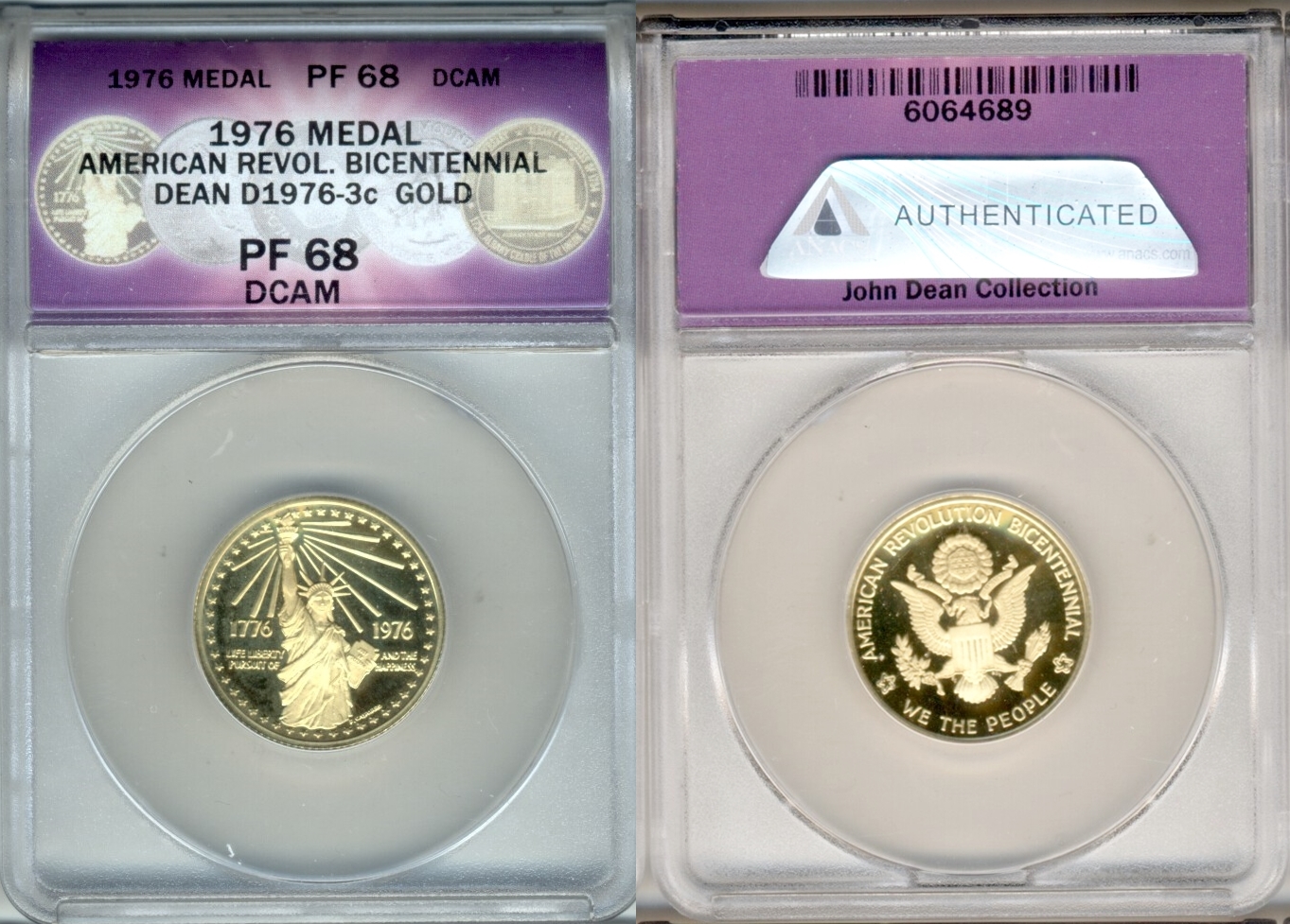 2.5" Diameter Gold-Plated Silver (Vermeil) medal. Only about 400 of these were gold plated. This one has edge #394. A beautiful piece, which I feel should have graded 1 to 2 points higher. Comes with some paperwork.