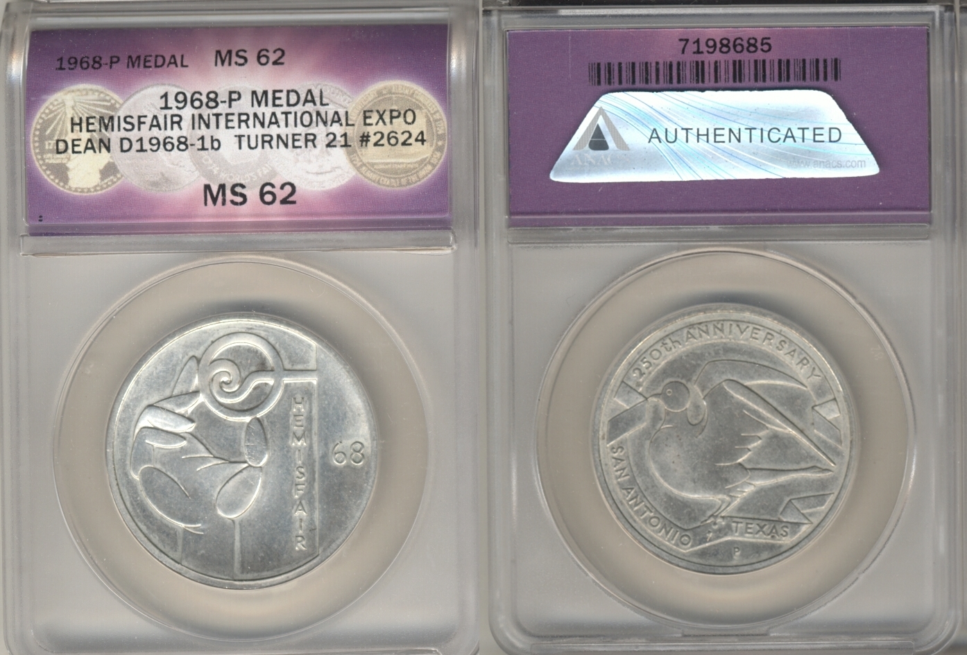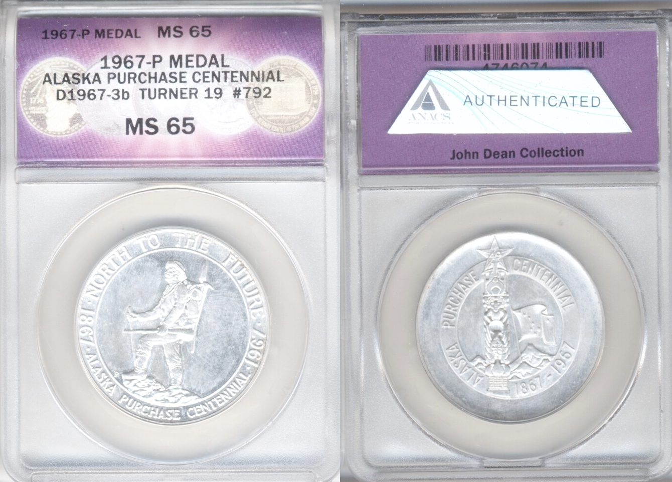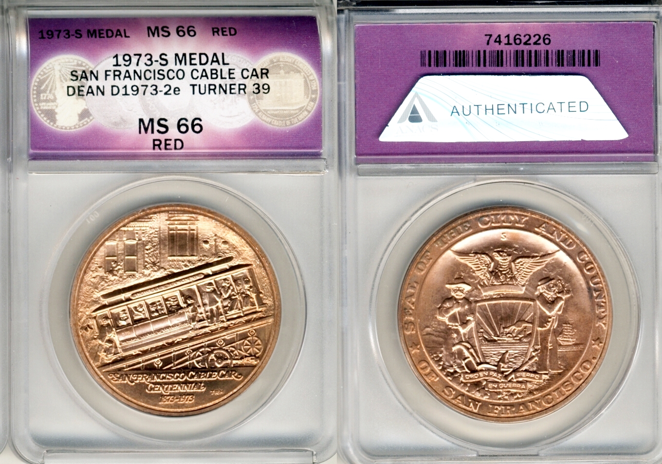 Nice high grade Bronze medal, not brass as label indicates. Slab is cracked on reverse and should be re-slabbed, thus the low price!!