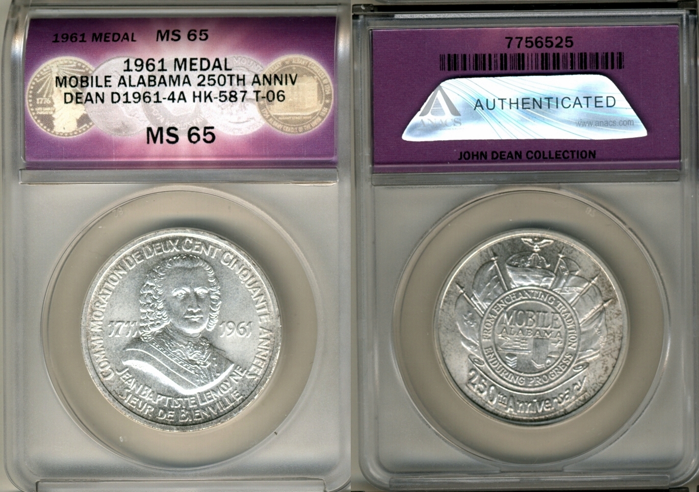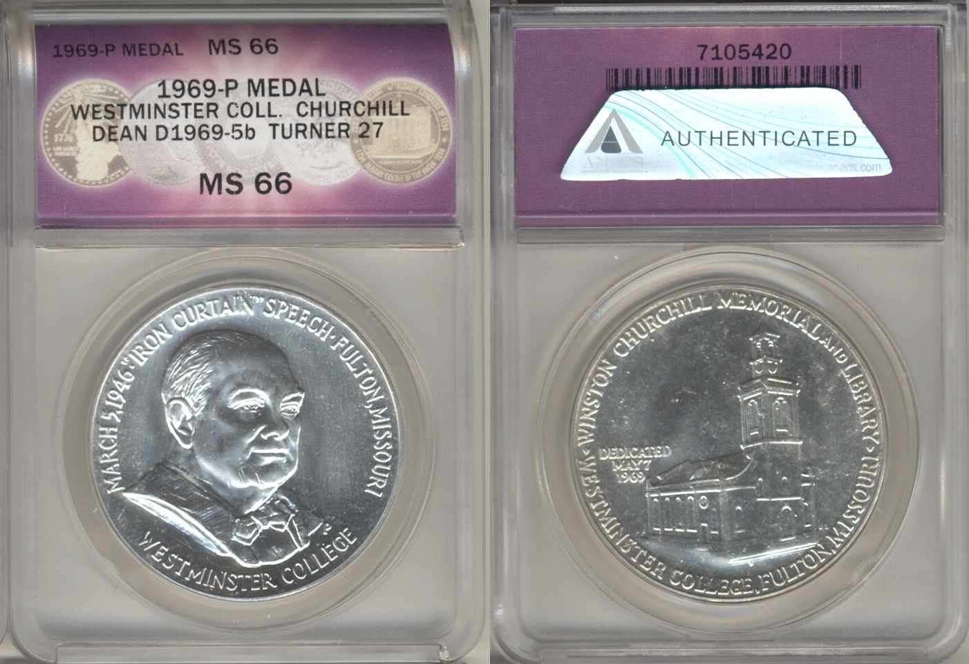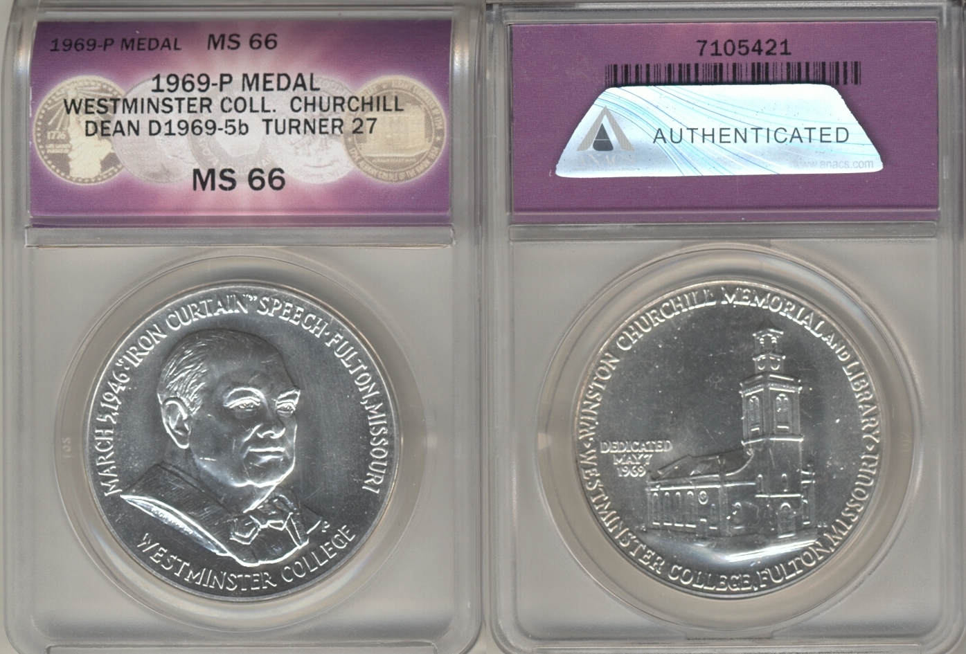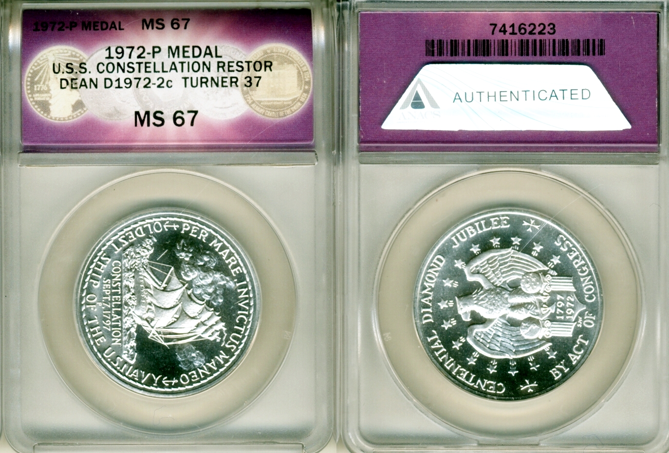 Nice high grade Bronze medal, not brass as label indicates. Slab is cracked on reverse and should be re-slabbed, thus the low price!!