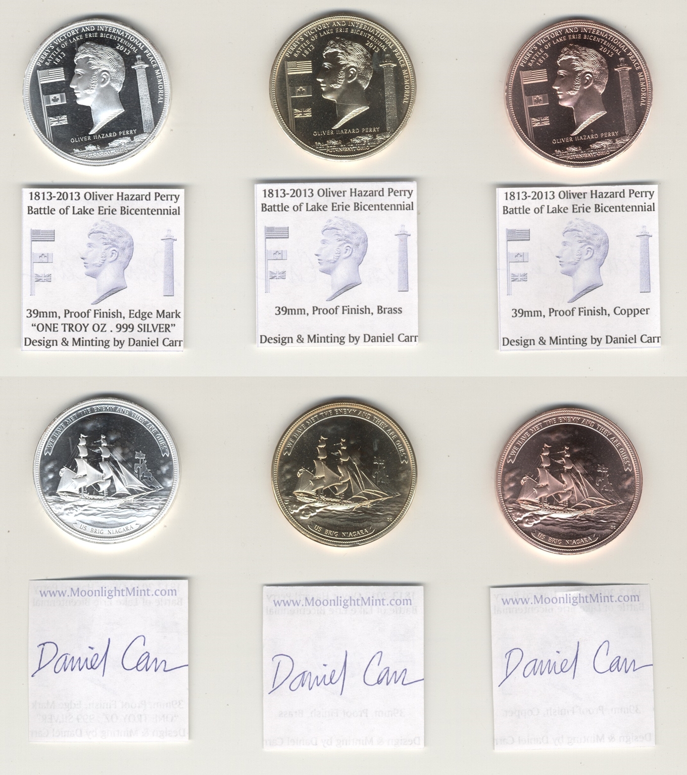 NOTE: Special sets of these medals have been donated to the Perry Battle Monument at Put-In Bay, Ohio and at the Erie Maritime Museum in Erie, PA., location of Commodore Perry's flagship, Niagara. These medals are NOT available for sale at these locations.