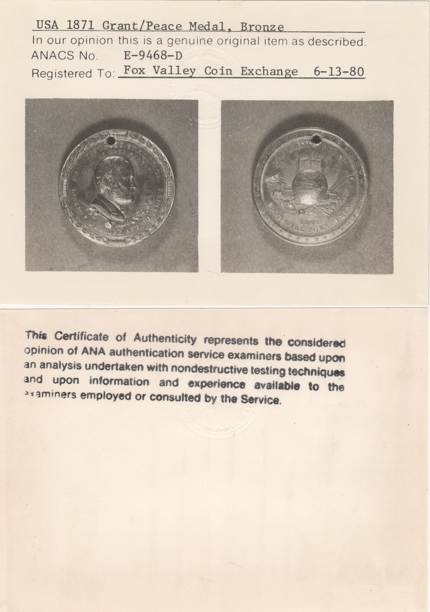 ORIGINAL ANACS PHOTO CERTIFICATE #E-9468-D