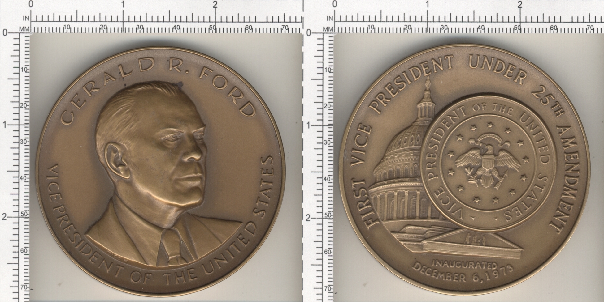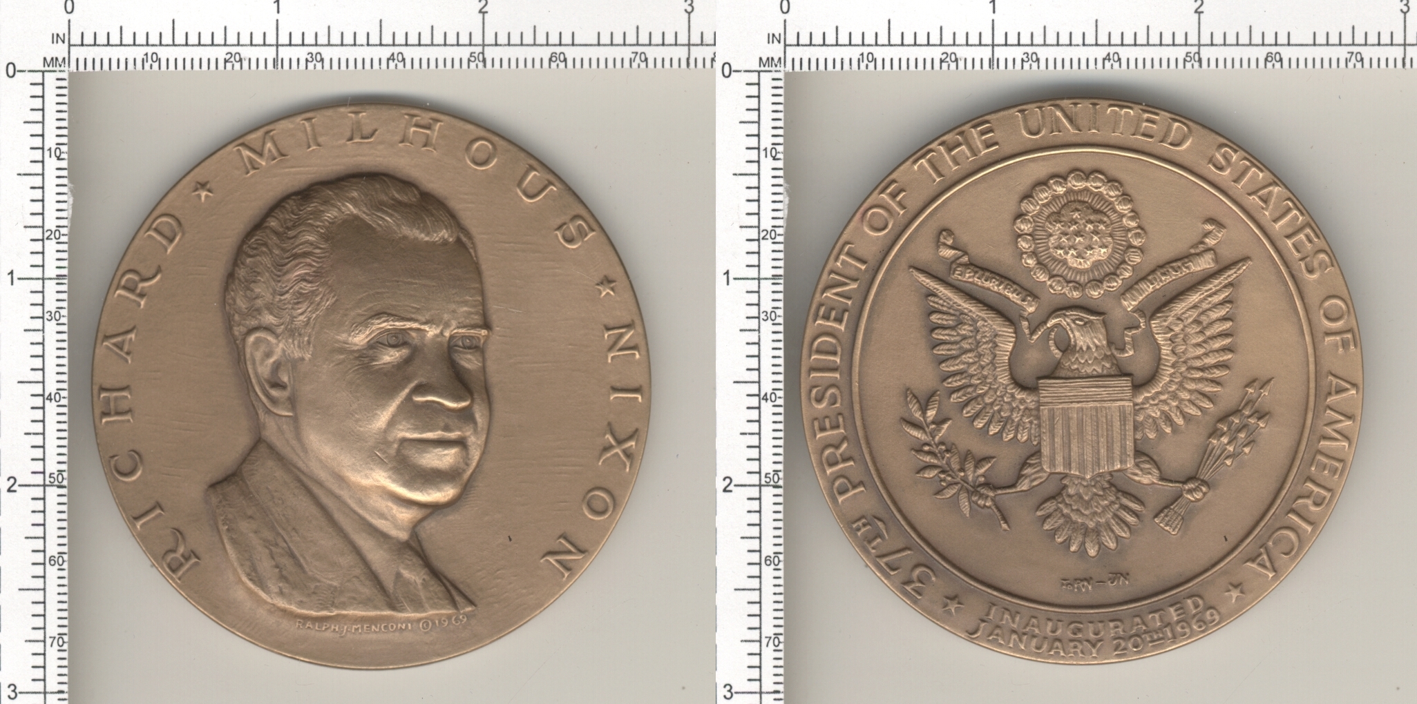 EDGE MARKED "1973 INAUGURAL COMMITTEE f 73 SOLID BRONZE"