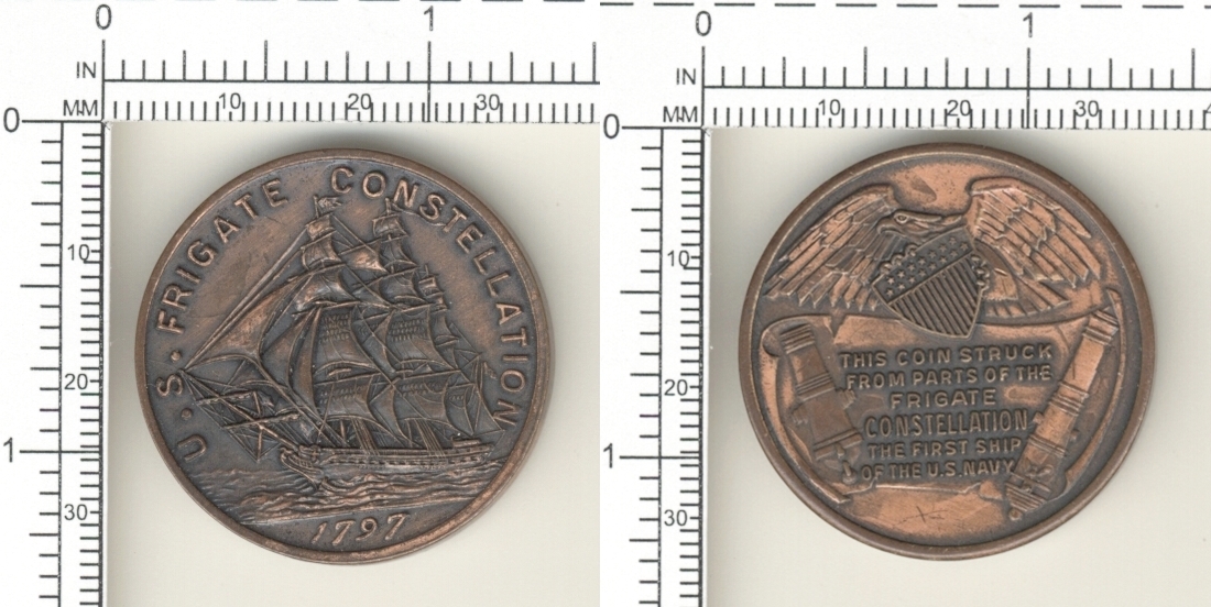 RELIC MEDAL, Struck from parts of the U.S. Frigate Constellation, The First Ship of the U.S. Navy